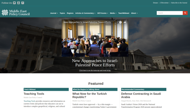 The Middle East Policy Council (MEPC) is a 501(c)(3) nonprofit organization founded in 1981 whose mission is to contribute to American understanding of the political, economic and cultural issues that affect U.S. interests in the Middle East.